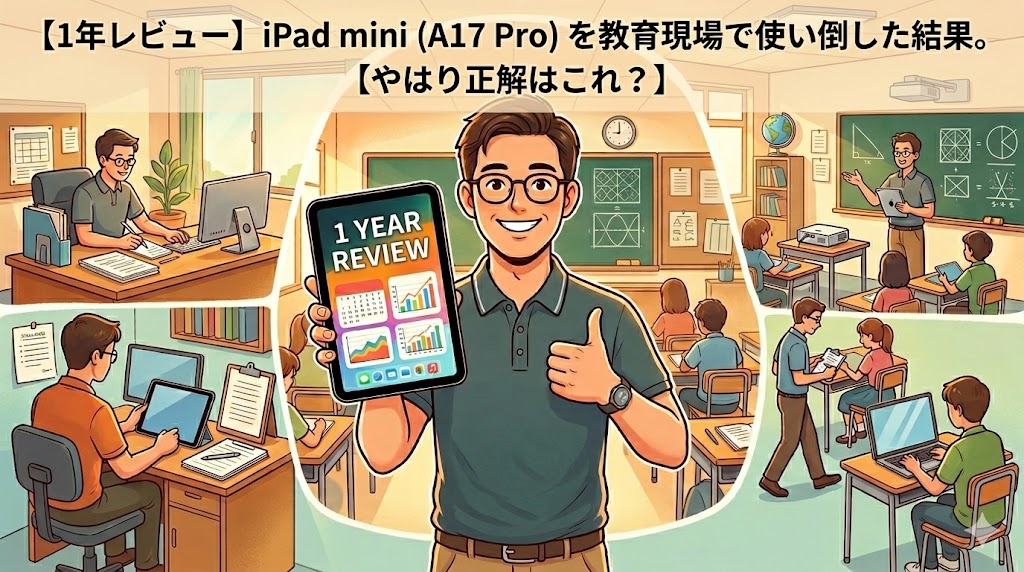 今回は、iPad mini(A17 Pro)の購入1年レビューを、教員目線からお伝えしていきます。